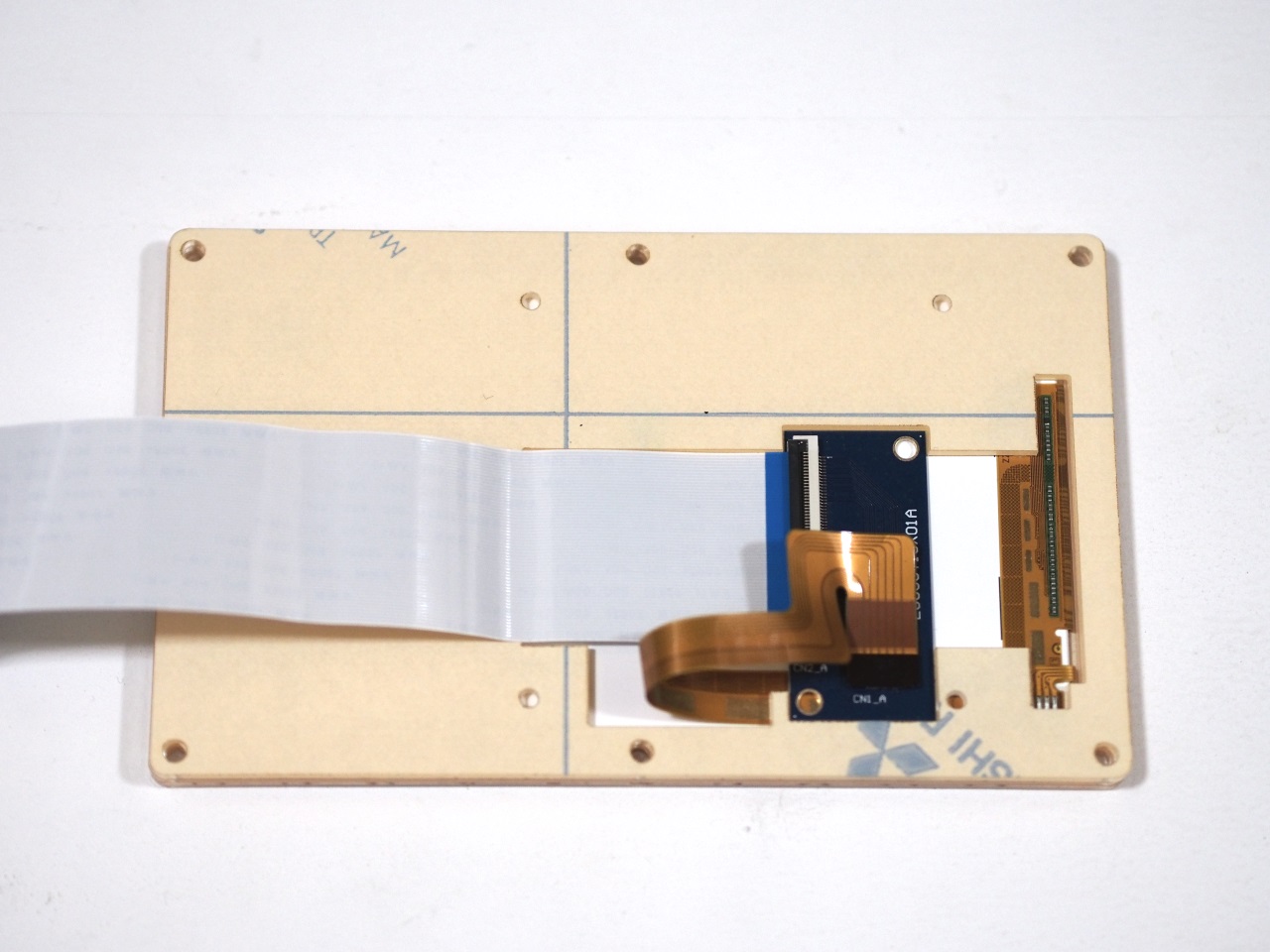 しかしこれ,薄い液晶パネルと基板を,すぐに断線しそうなフレキケーブルで繋いであるだけ…といった構成で,このままでは安心して使えません。