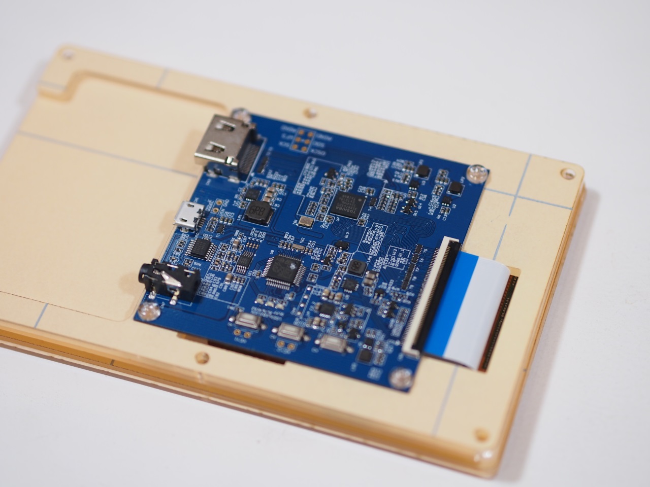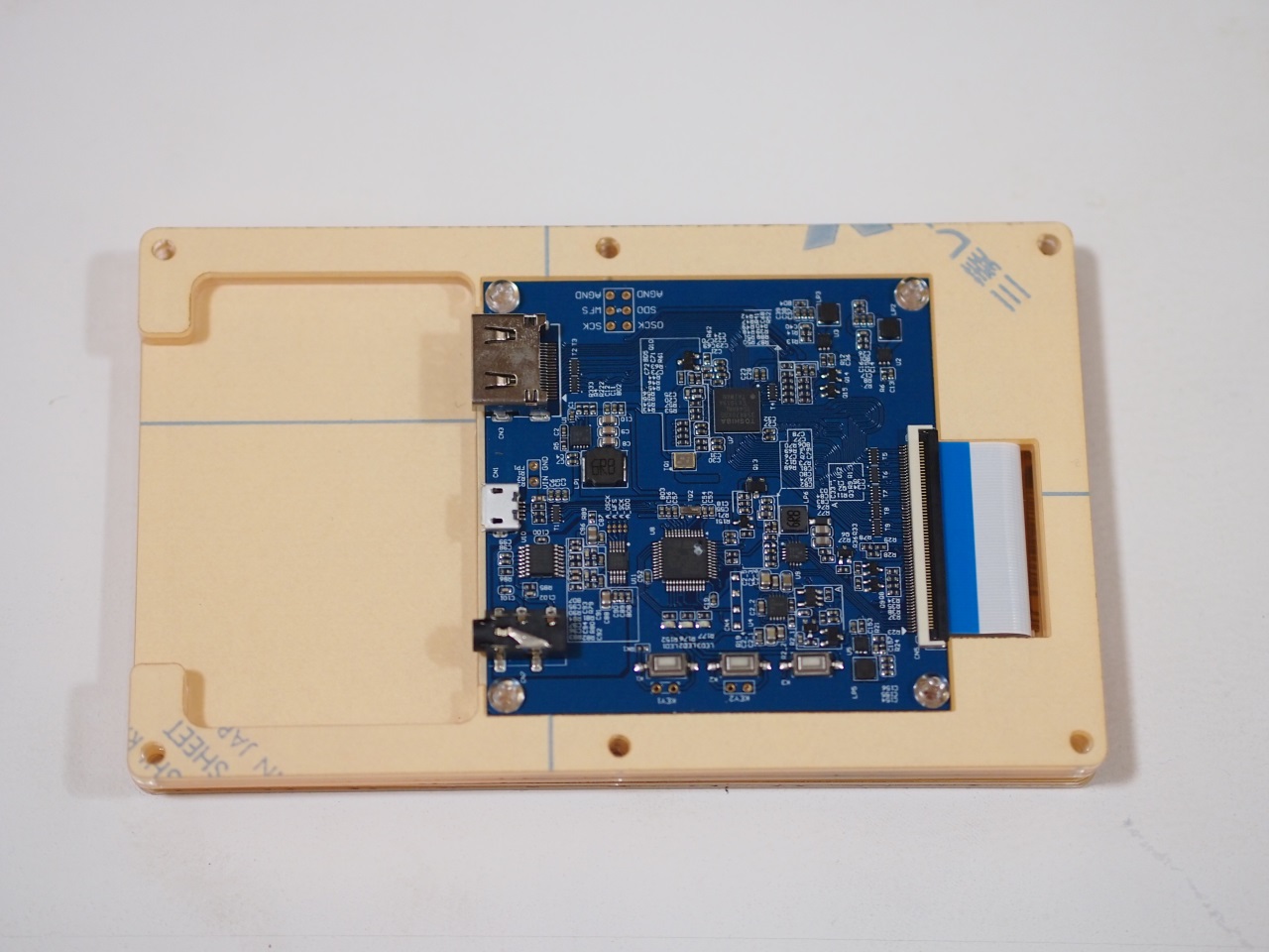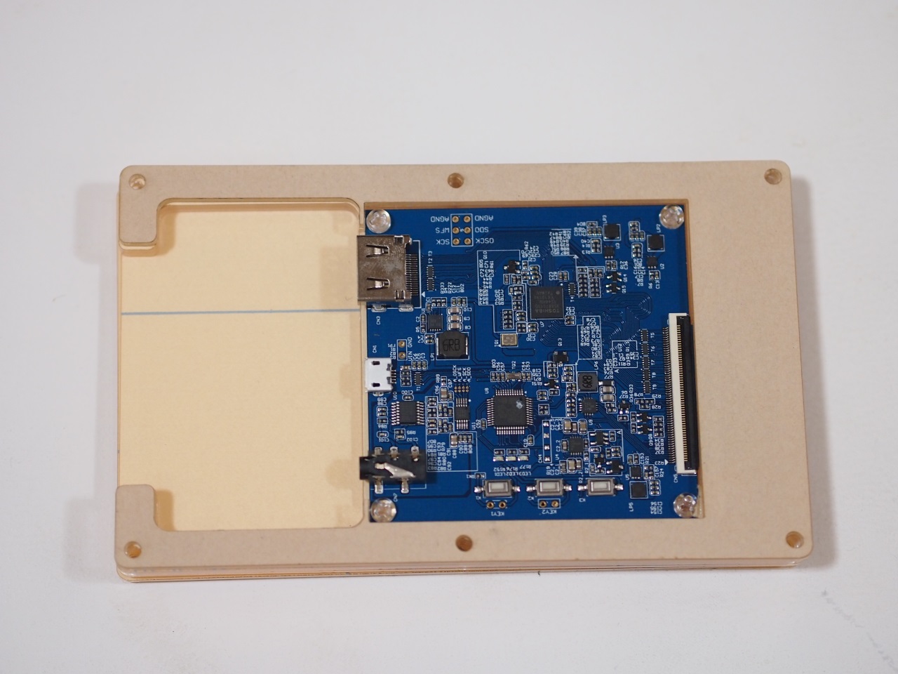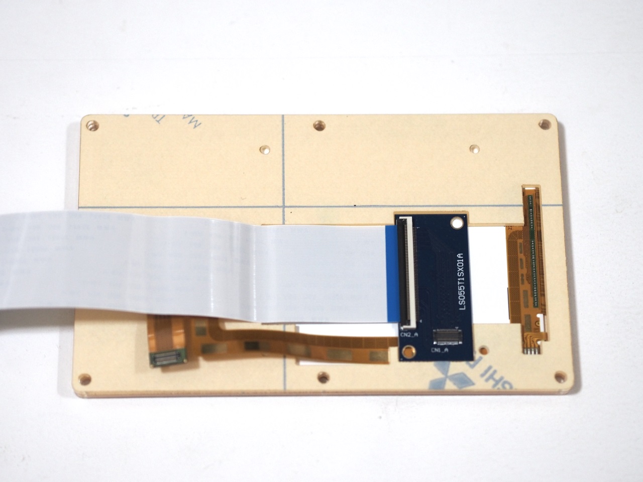 しかしこれ,薄い液晶パネルと基板を,すぐに断線しそうなフレキケーブルで繋いであるだけ…といった構成で,このままでは安心して使えません。
