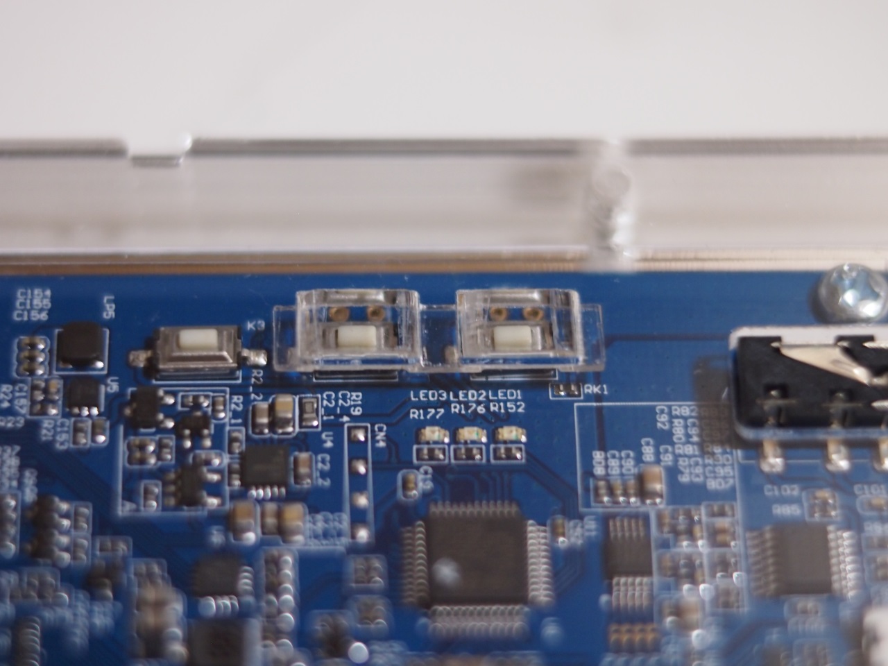 電源と明るさ調整ボタンはアクリルパーツで押せるようになっています。