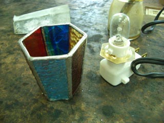 ガラスの周囲に銅のテープを巻いてハンダでつけてます。