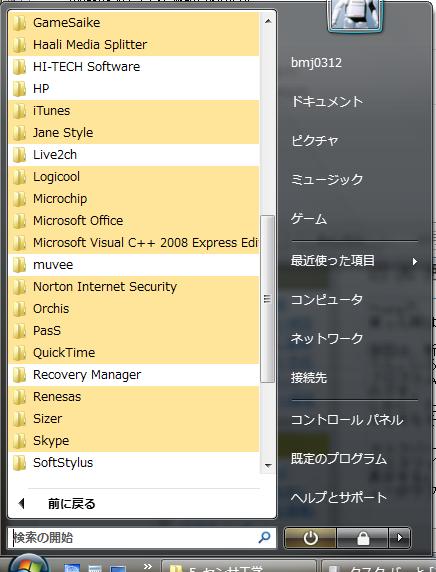 うん。いろいろ入れたんで、黄色ばっかりでした。スタートメニューからプログラム起動することなんてないので、一向に黄色強調表示は減らないのです。