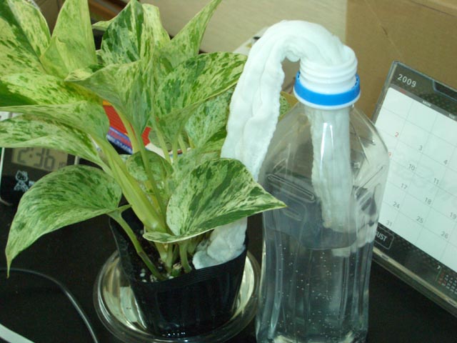 順調に水がポットへ移り、土にしみこみ、受け皿へ。