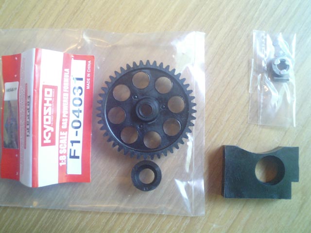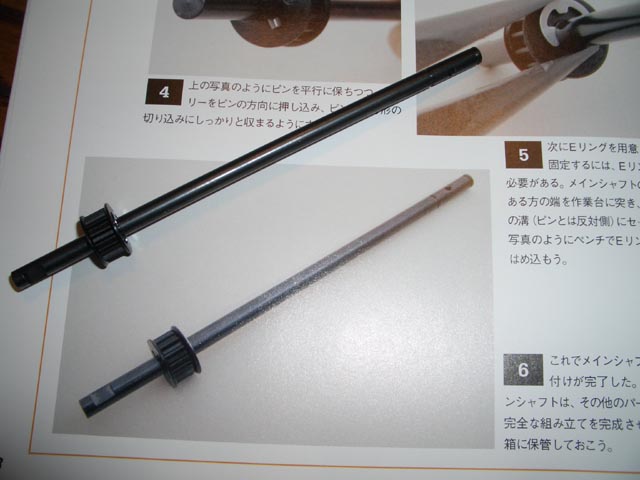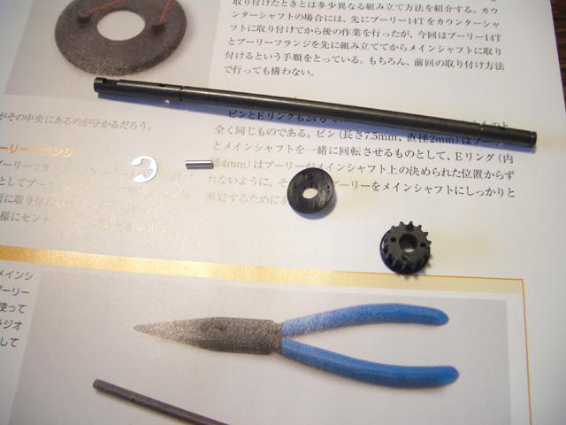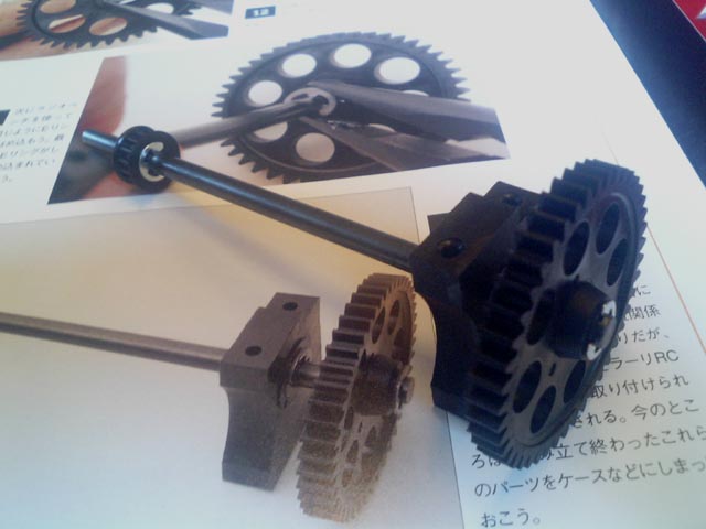前回組み立てたシャフトにでっかいギアをつけます。